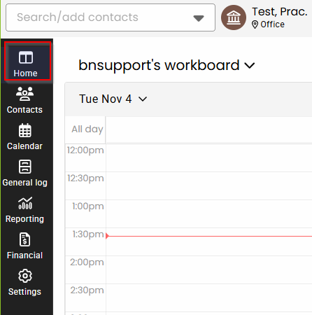 User workboard is the personalized dashboard for managing daily schedule, tasks, and documentation workflow. To access the workboard at any time, select the Home icon in the navigation menu on the left side of the screen.