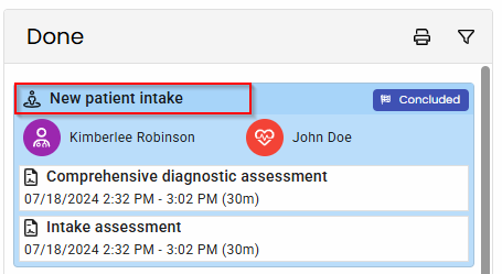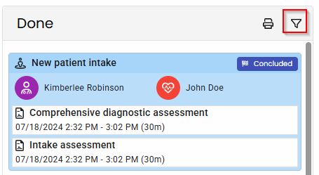 Note: The Done column typically displays the most recent completed items at the top. For older records or a full comprehensive history, use the dedicated filter function located at the top right of the Done column.