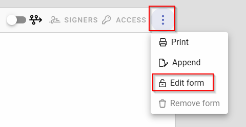 The user has the ability to edit the document by clicking on the three dots stacked vertically at the top right of the screen and selecting Edit Form.