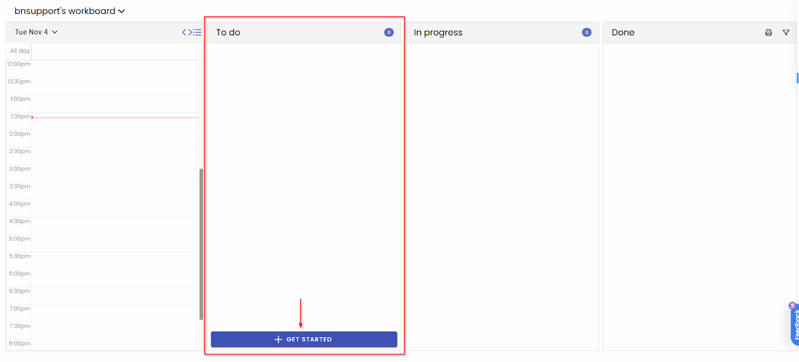 The workboard is designed in a workflow style to visualize work, track progress, and ensure tasks move smoothly through each stage until completion.